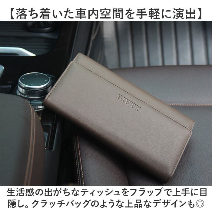 ・生活感の出がちなティッシュをフラップで上手に目隠し。クラッチバッグのような上品なデザインも◎