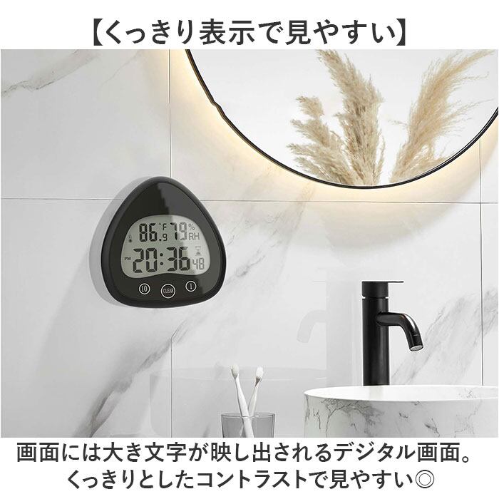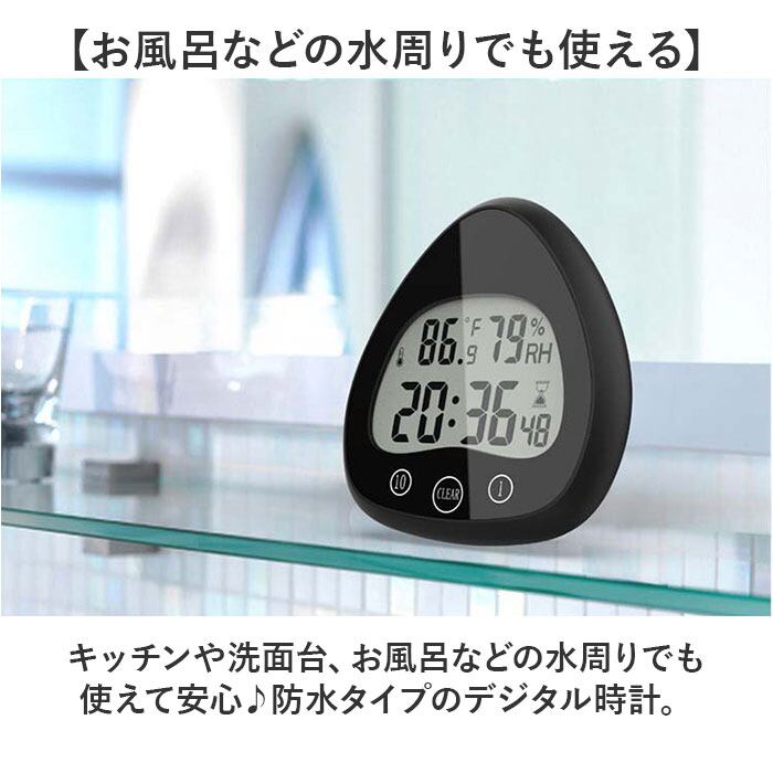 置き時計 デジタル 温湿度計 通販 温度計 湿度計 お風呂 時計 防水 バスクロック シャワークロック キッチンタイマー カウントダウンタイマー カウントダウンクロック 置時計 IP25防水 吸盤 バスルーム 浴室 洗面所 キッチン 台所 DIY インテリア