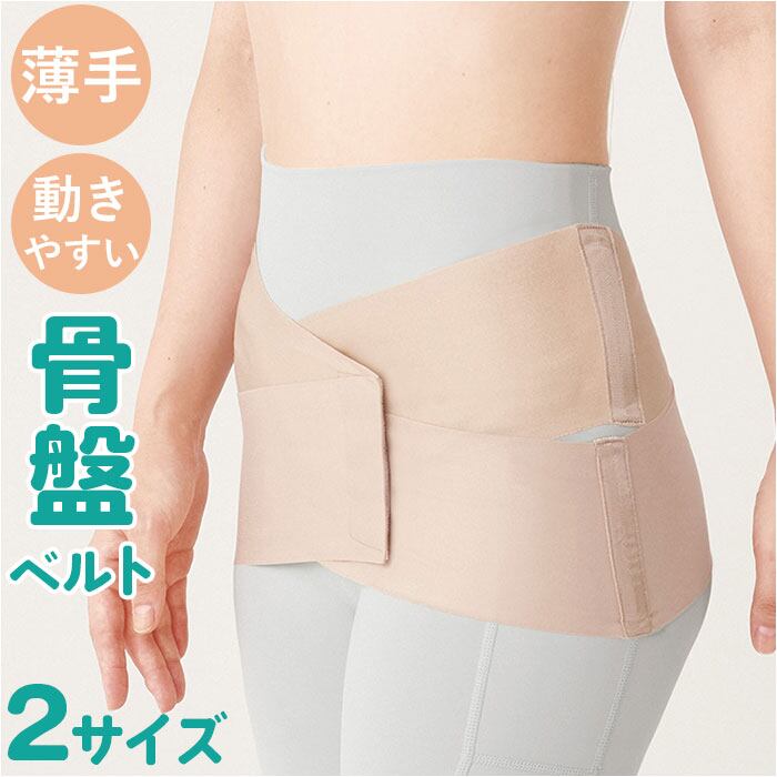 ・2本のベルトが骨盤の両サイドを上下に分け、幅広くサポート。面ファスナーで着脱スムーズ。