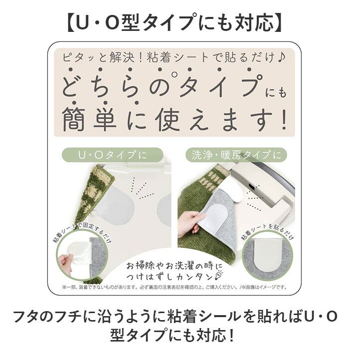 ・フタのフチに沿うように粘着シールを貼ればU・O型タイプにも対応!