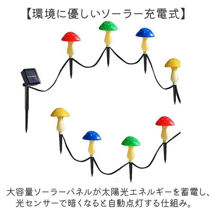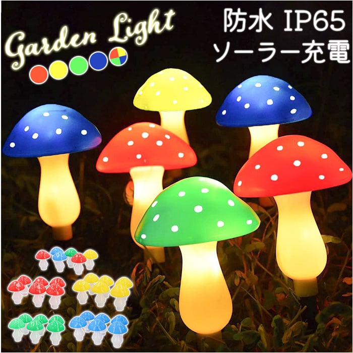 ・華やかな彩りで、暗くなったお庭を可愛らしく照らしだす「ガーデンライト・きのこ」が新登場。