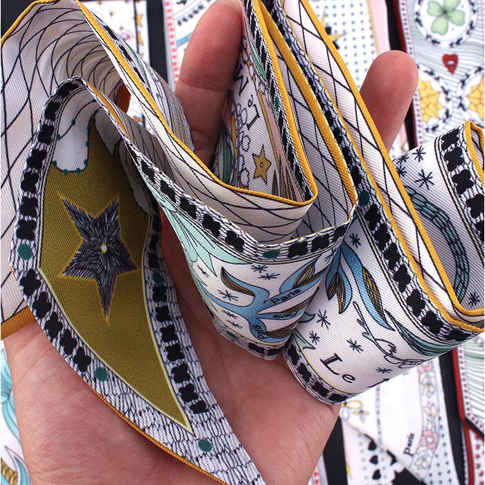 ヘアアクセサリー スカーフ 通販 スリムスカーフ ロングスカーフ ヘアバンド 編み込み リボン 髪飾り 首巻き えりまき おしゃれ イラスト ヘアアレンジ ヘア アクセサリー 大人向け リバーシブル バッグ 持ち手 レディース 女性 レディーススカーフ