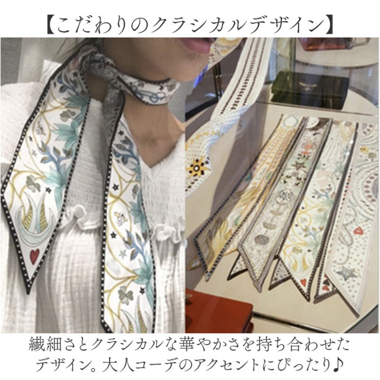 ・サッとつけるだけでおしゃれに仕上がる、ネックスカーフ。裏表のない両面デザイン。