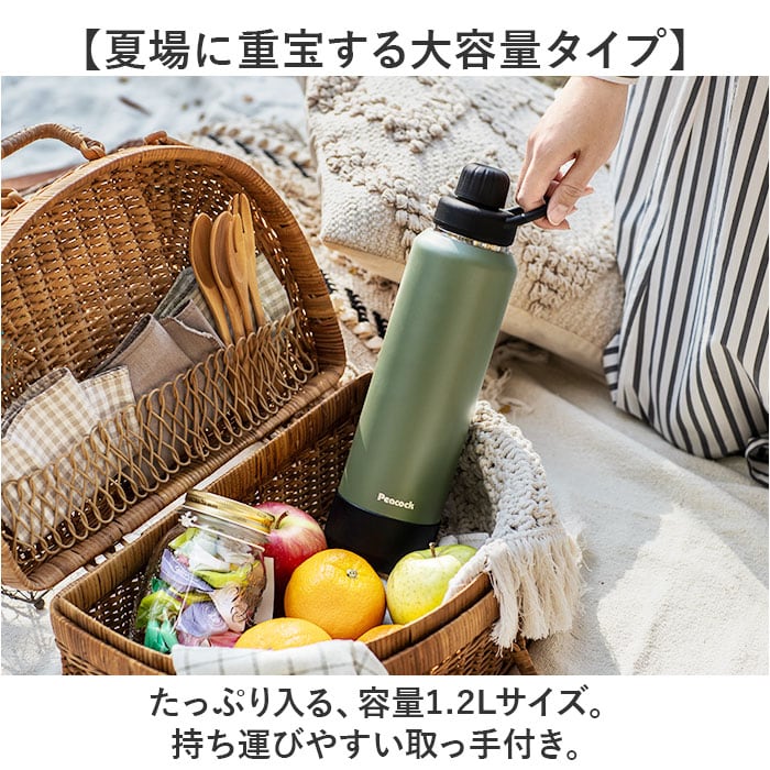 ・スポーツドリンク&炭酸に対応◎手軽に持ち歩ける「Peacock ステンレスマグボトル」。