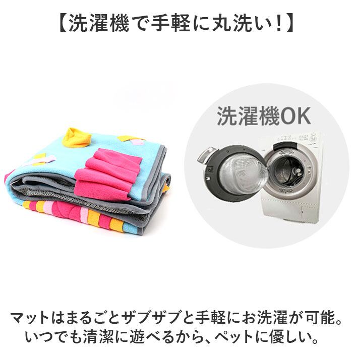 ・マットはまるごとザブザブと手軽にお洗濯が可能。いつでも清潔に遊べるから、ペットに優しい。
