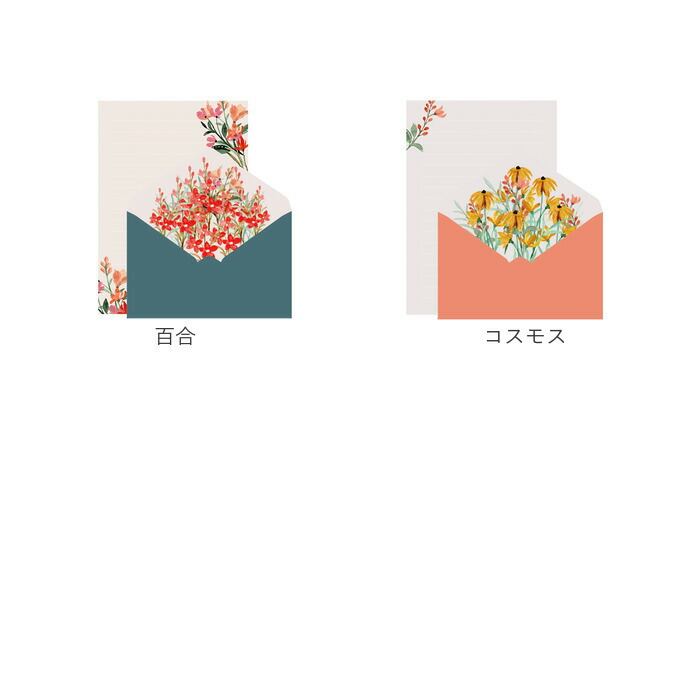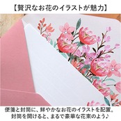 ・便箋と封筒に、鮮やかなお花のイラストを配置。封筒を開けると、まるで豪華な花束のよう♪
