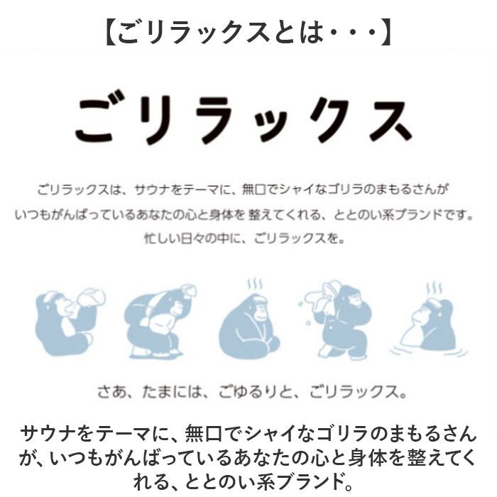 ・サウナをテーマに、無口でシャイなゴリラのまもるさんが、いつもがんばっているあなたの心と身体を整えてくれる、ととのい系ブランド。