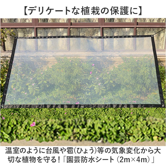 ガーデニング 園芸シート ロープ付き 2m×4m 通販 防水シート 透明シート 温室フィルム シート 温室カバー 雨よけ 保護シート 保護 植物 日よけ 日除け 温室 ビニール温室 折りたたみ 折り畳み 透明 コンパクト 園芸 屋上 緑化 家庭 菜園 農業 屋外