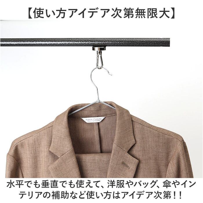 ・水平でも垂直でも使えて、洋服やバッグ、傘やインテリアの補助など使い方はアイデア次第!!