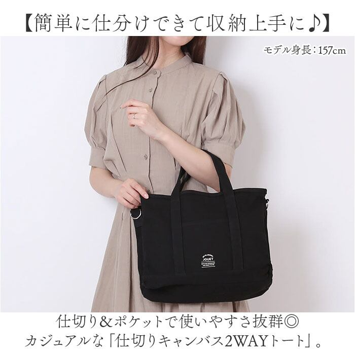 ・仕切り&ポケットで使いやすさ抜群◎カジュアルな「仕切りキャンバス2WAYトート」。