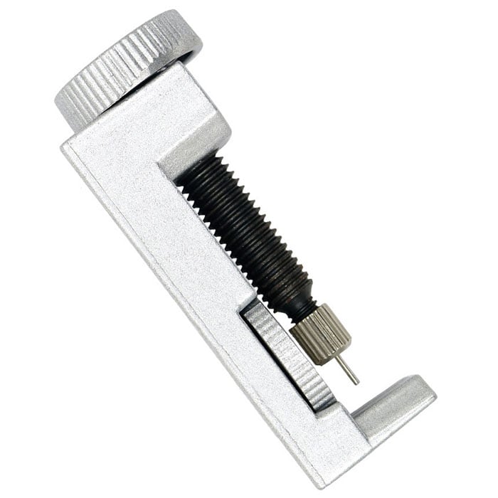 ・バンド部分を調整器具の溝にセットして、ハンドルを回すことで簡単にピンの取り外しが可能。