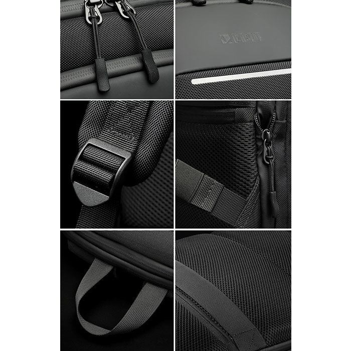 ・メイン収納:ファスナーポケット×1、PCポケット×1、オープンポケット×3、メッシュポケット×2