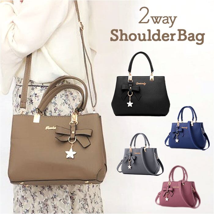 ショルダーバッグ レディース 2WAY リボンチャーム付 通販 ショルダーバック ショルダー トートバッグ トートバック トート ハンドバッグ ハンドバック 肩掛け 斜めかけ ななめかけ PU かわいい 可愛い 女性 大人 通勤 通学 おしゃれ オシャレ