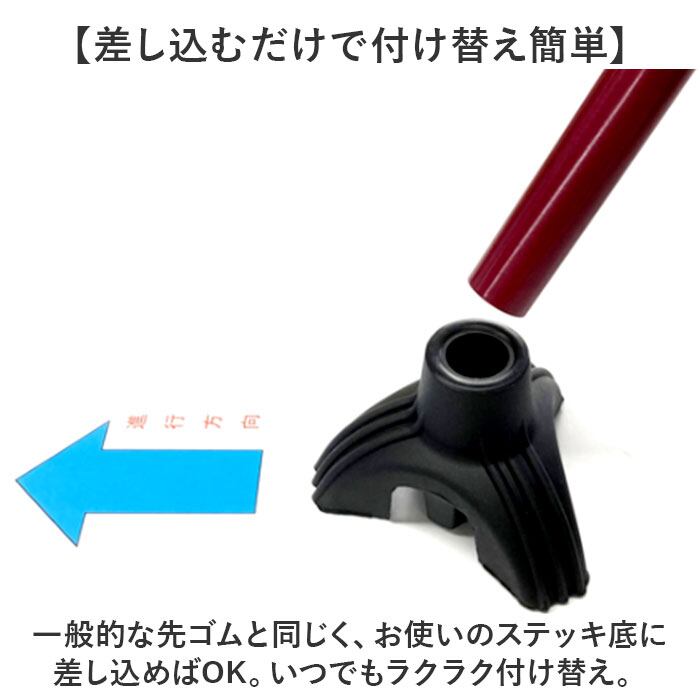 ・一般的な先ゴムと同じく、お使いのステッキ底に差し込めばOK。いつでもラクラク付け替え。