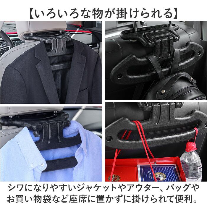 ・シワになりやすいジャケットやアウター、バッグやお買い物袋など座席に置かずに掛けられて便利。