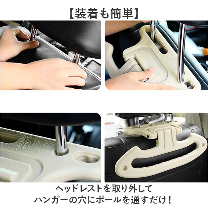・ヘッドレストを取り外してハンガーの穴にポールを通すだけ!