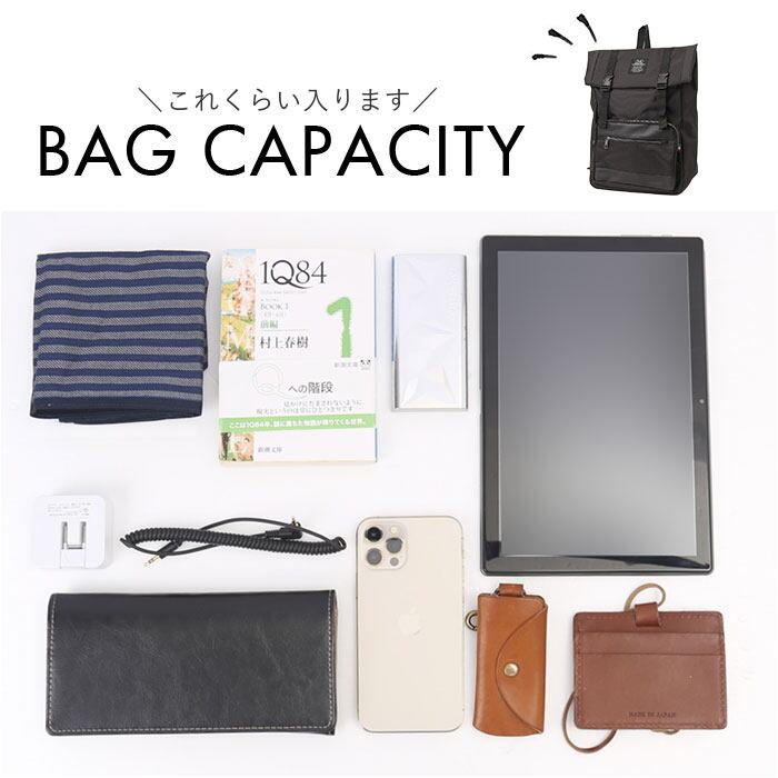 ・必要な荷物を収納できる、安心サイズ。大きく開口するフラップ式で、出し入れがラクラク!