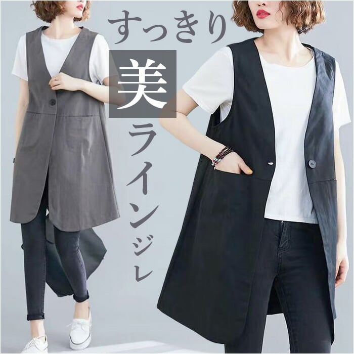 ジレ レディース ベスト 通販 ジレベスト ロング丈 ロングジレ ロングベスト ノースリーブ 羽織り 前空き 重ね着 ロング丈ジレ おしゃれ オシャレ かわいい Vネック カジュアル シンプル オフィス ファッション 婦人服 お出かけ 通勤 通学