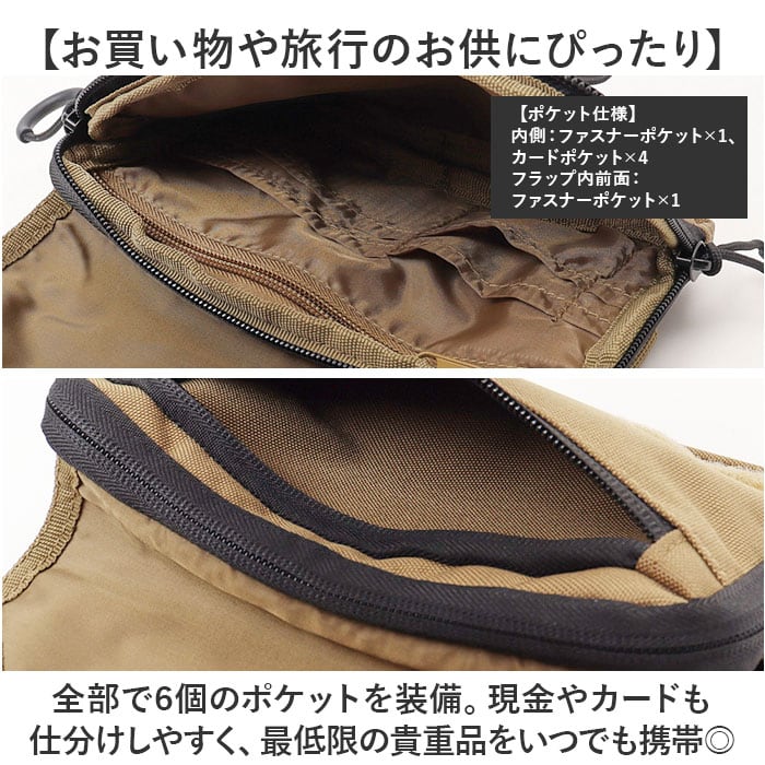 ・全部で6個のポケットを装備。現金やカードも仕分けしやすく、最低限の貴重品をいつでも携帯◎