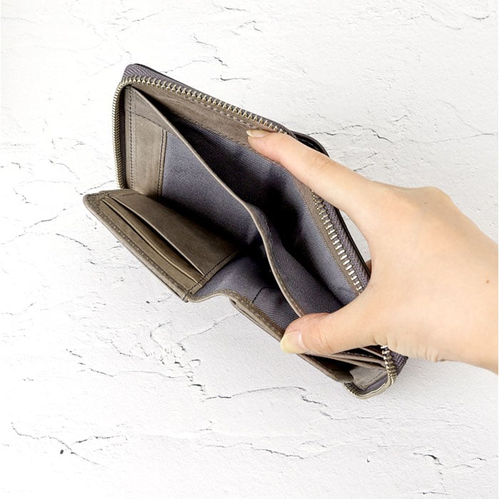 ・開口部はコの字型に大きく開くラウンドファスナーを採用。中が見やすく、出し入れしやすいつくりに。