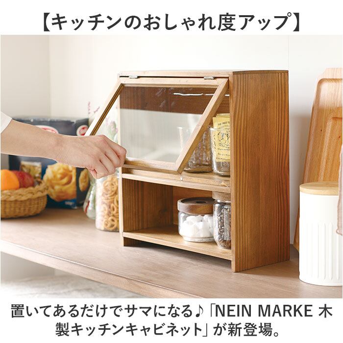 NEIN MARKE ナインマーケ キッチン キャビネット 2段 通販 キッチンキャビネット 卓上キャビネット ショーケース 調味料ラック 飾り棚 ケース ラック 収納 木製 ガラス扉 カウンター上 クレエ カフェ シンプル ナチュラル インテリア 雑貨