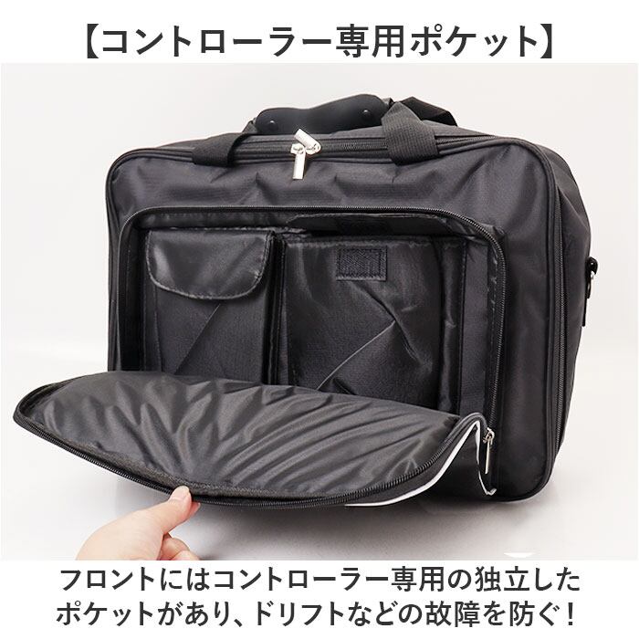 ・フロントにはコントローラー専用の独立したポケットがあり、ドリフトなどの故障を防ぐ!