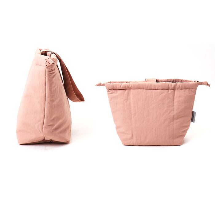 ・バッグの口はキュッと絞れる巾着仕様。小物が飛び出す心配がなく、バッグ内側の目隠し効果も◎