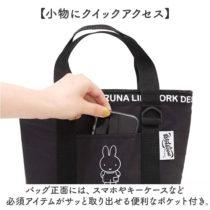 ・バッグ正面には、スマホやキーケースなど必須アイテムがサッと取り出せる便利なポケット付き。
