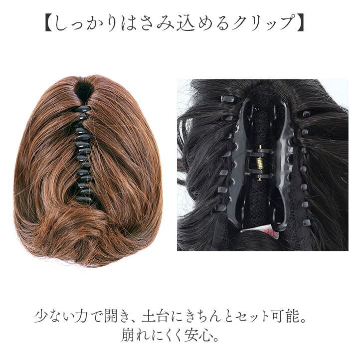 ・自毛で土台の団子を作り、バンスクリップをはさんで固定。手グシで整えたら完成◎