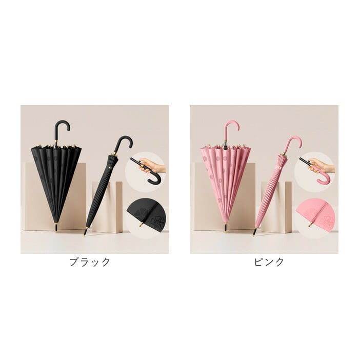 ・無地で和傘のように風雅な雰囲気のある24本骨タイプで和服にも洋服にもマッチ◎