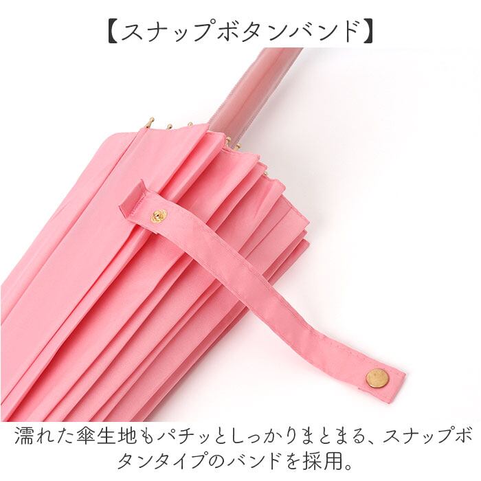 ・濡れた傘生地もパチッとしっかりまとまる、スナップボタンタイプのバンドを採用。