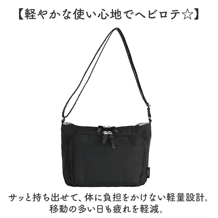 ・長さ調節可能なショルダーを使って、肩掛けや斜め掛け。アクティブシーンも快適。