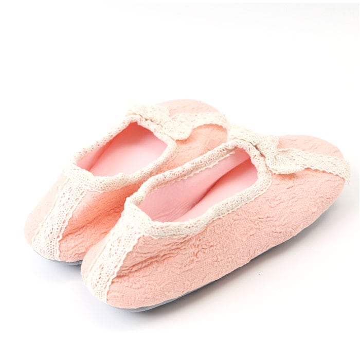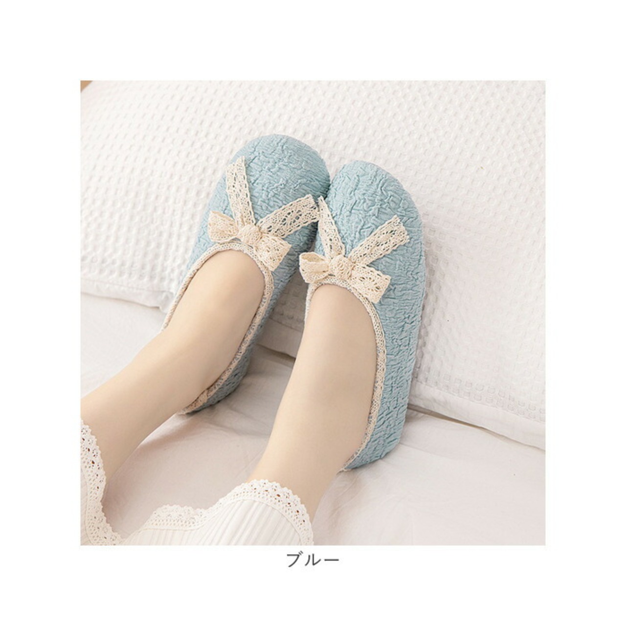 ・履き心地がクセになりそう♪レースリボンがアクセントのかかと付きルームシューズ。