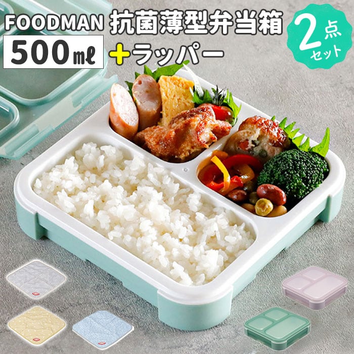 FOODMAN フードマン 抗菌 薄型弁当箱 500ml 2点セット