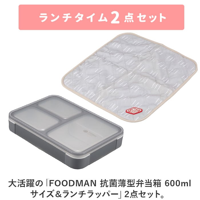 ・大活躍の「FOODMAN 抗菌薄型弁当箱 600mlサイズ&ランチラッパー」2点セット。