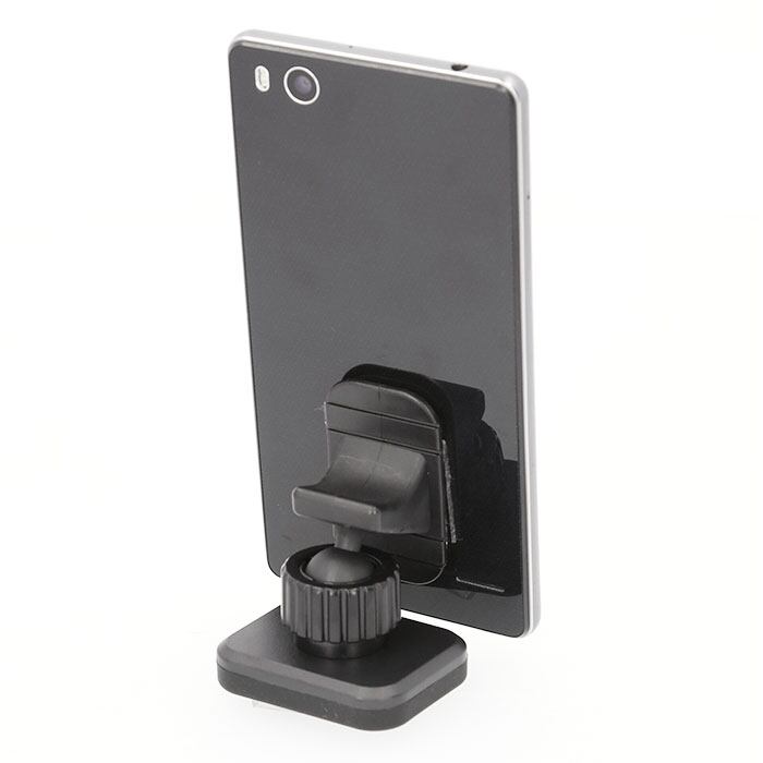 ・ホルダーは底面の両面テープで、車のダッシュボードなどに固定。凹凸加工が施され、曲面にも設置OK!