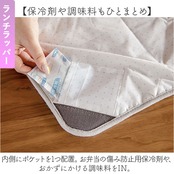 ※内側にポケットを1つ配置。お弁当の傷み防止用保冷剤や、おかずにかける調味料をIN。