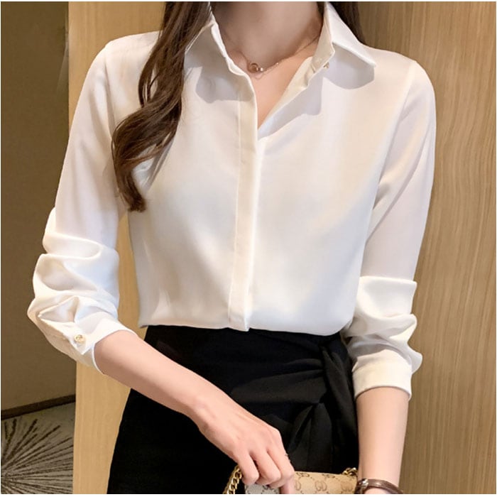 ・サテン調の微光沢感が程よい華やかさ♪オフィス人にもピッタリなブラウス。