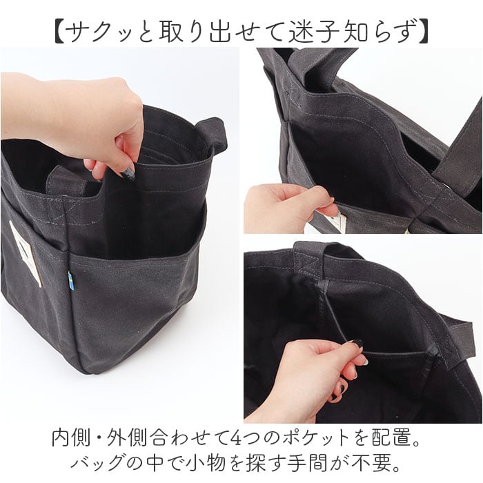 ・内側・外側合わせて4つのポケットを配置。バッグの中で小物を探す手間が不要。