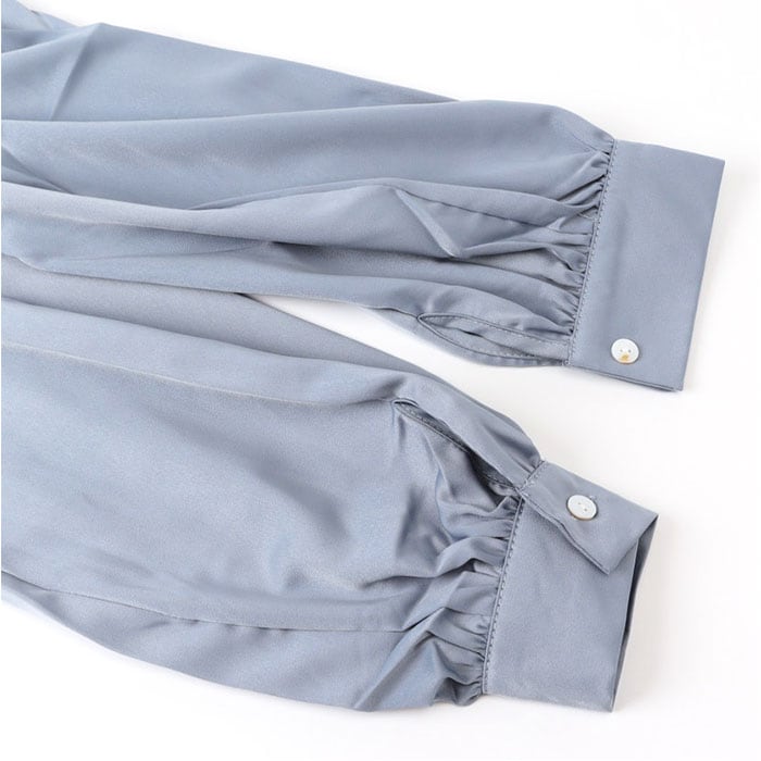 ・フロントの絞りとボリュームある袖が女性らしいアクセントに。