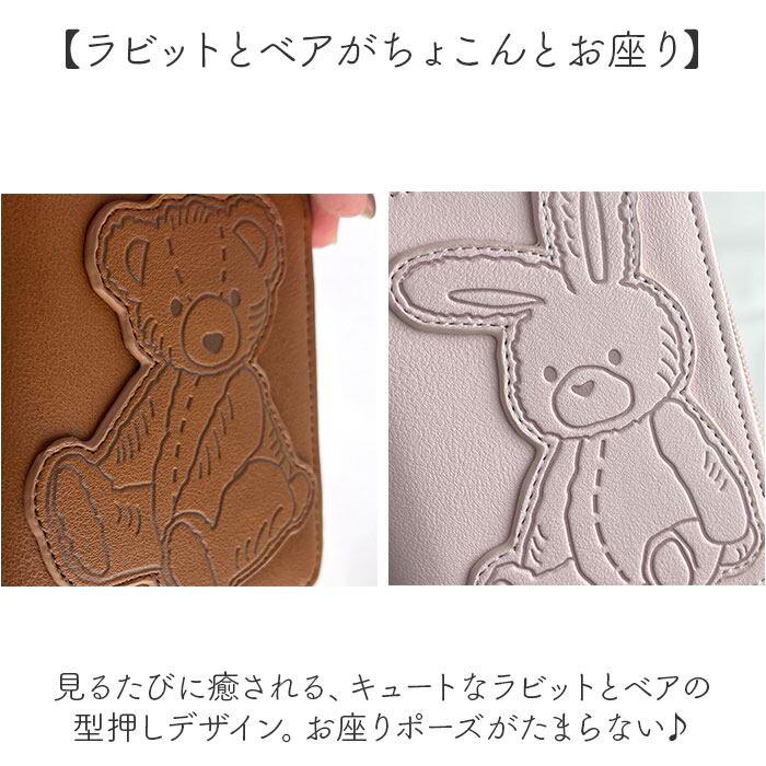 ・見るたびに癒される、キュートなラビットとベアの型押しデザイン。お座りポーズがたまらない♪