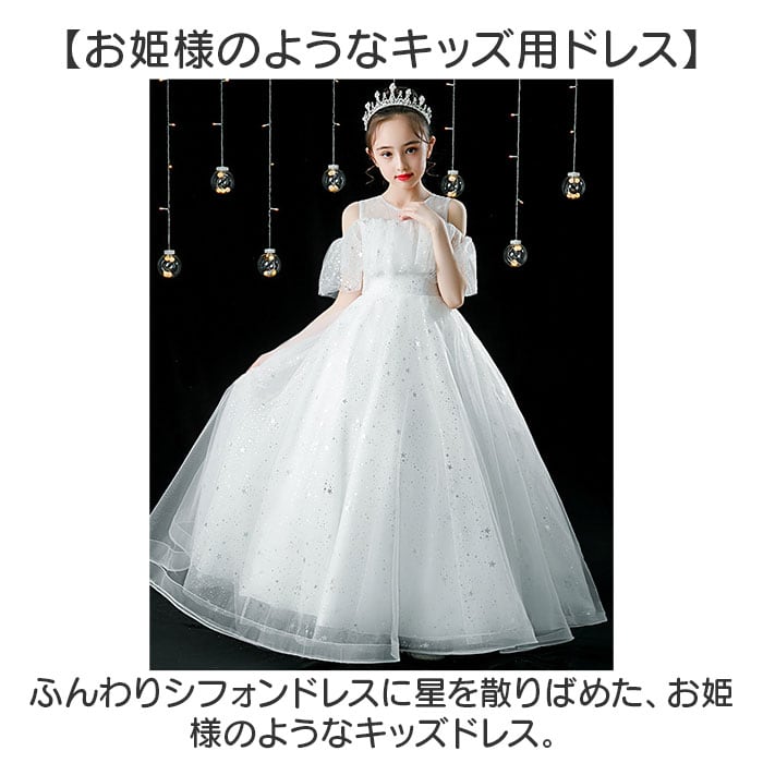 ・ふんわりシフォンドレスに星を散りばめた、お姫様のようなキッズドレス。