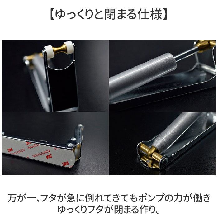 ・万が一、フタが急に倒れてきてもポンプの力が働きゆっくりフタが閉まる作り。