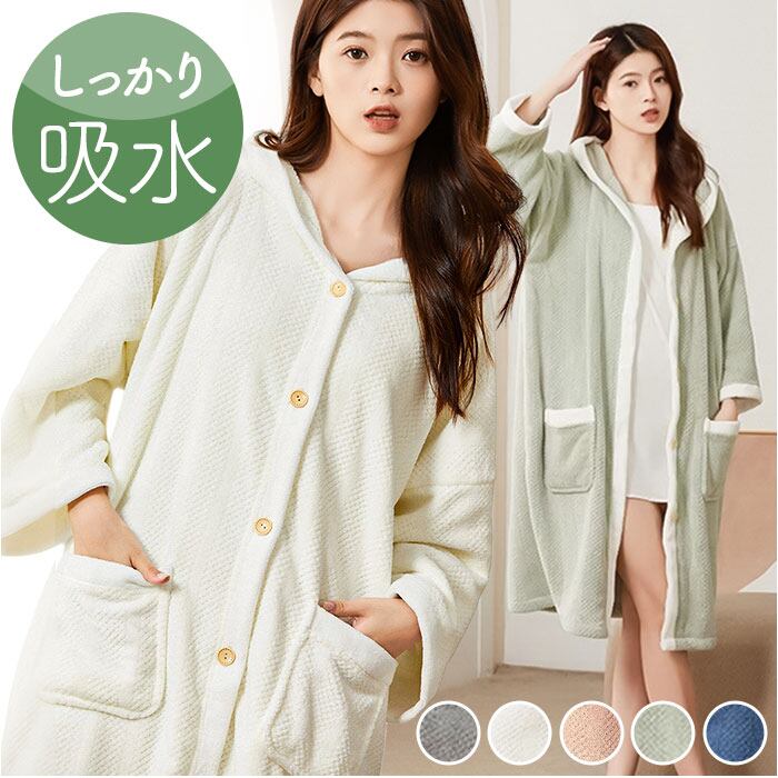 フード付き バスローブ レディース 通販 ガウン タオル ルームウェア 湯上り 着 湯上がり お風呂上がり ナイトガウン 速乾 吸水 タオル地 フード ボタン 前開き ママ 子育て かわいい 可愛い ふわふわ ロング あたたかい 冬 部屋着 寝巻き おしゃれ