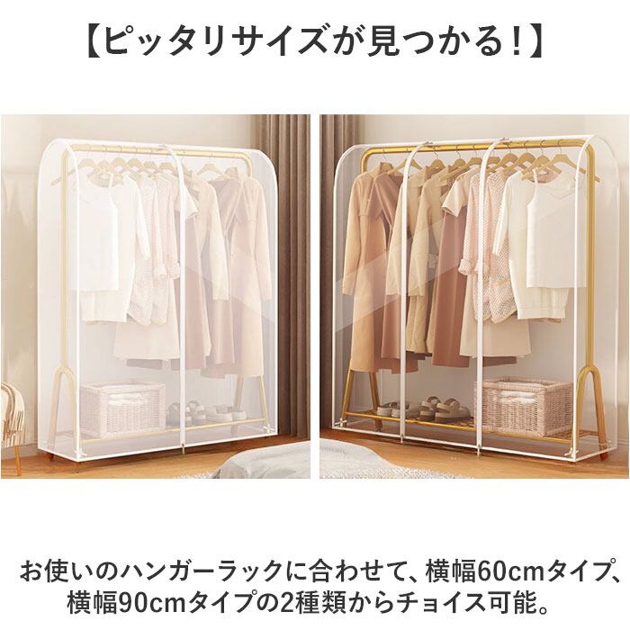 ・お部屋の片隅にあるパイプハンガーやウッドラックに掛けたお洋服を、すっぽり覆ってフルカバー。