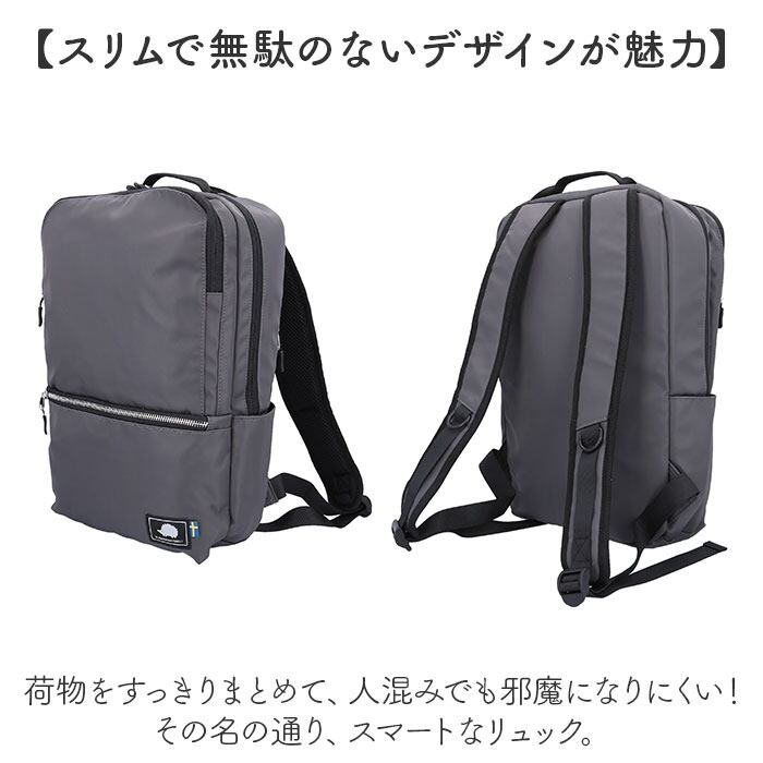 ・荷物をすっきりまとめて、人混みでも邪魔になりにくい!その名の通り、スマートなリュック。