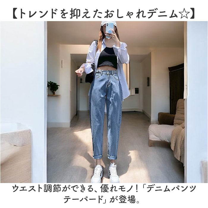 デニムパンツ テーパードパンツ ウエスト調整可能