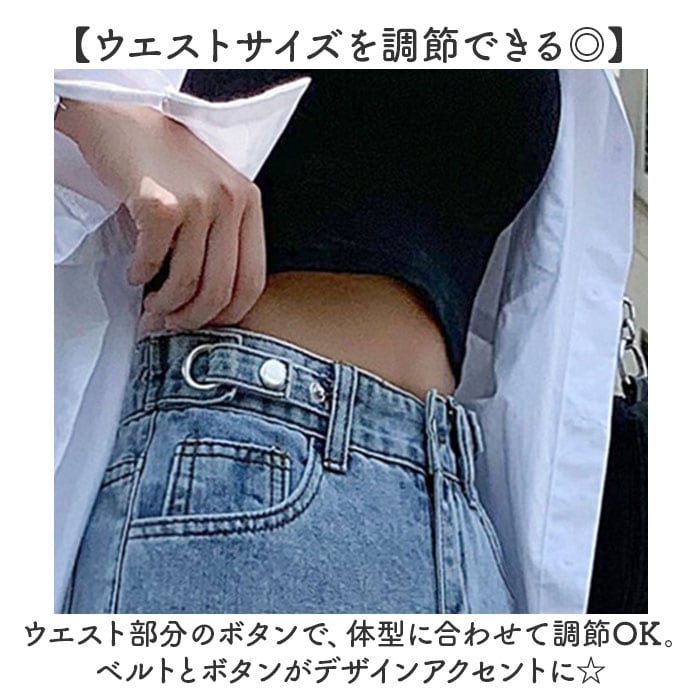 ・ウエスト部分のボタンで、体型に合わせて調節OK。ベルトとボタンがデザインアクセントに☆