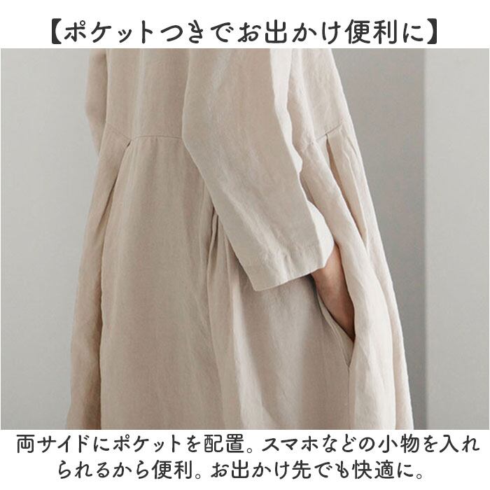 ・大人のためのリラクシースタイル☆「リネン風ワンピース 七分袖」が登場。