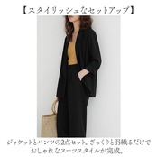 ・ジャケットとパンツの2点セット。ざっくりと羽織るだけでおしゃれなスーツスタイルが完成。